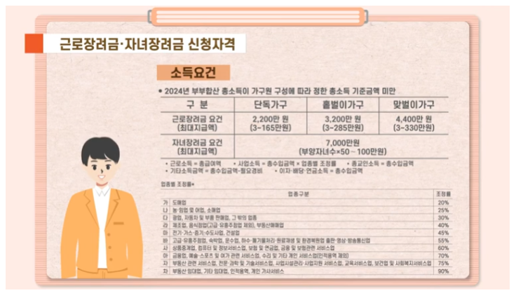 올해 근로장려금의 핵심은 소득 요건 완화입니다. 특히 맞벌이 가구의 경우 기준이 넓어져 더 많은 가정이 포함됩니다.