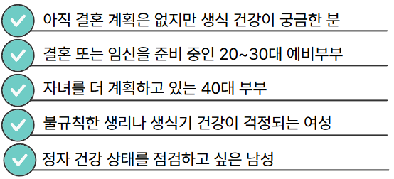 "나는 아직 결혼도 안 했는데 이런 지원 받을 수 있을까?" , "임신을 당장 계획하진 않지만, 건강 상태는 알고 싶다."