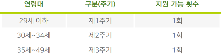 - 즉, 한 사람이 생애 동안 총 3번까지 시기별로 가임력 검사를 받을 수 있는 기회가 주어집니다.