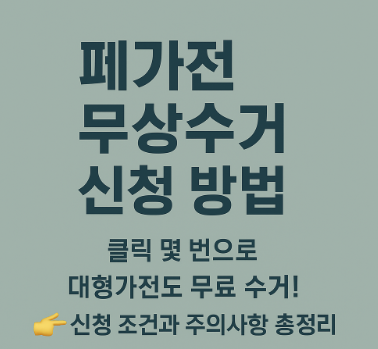 이번 글에서는 ‘폐가전 무상 수거 신청 방법’과 신청 시 주의사항, 자주 묻는 질문까지 정리해드릴게요. 이사, 대청소를 앞두고 계신다면 반드시 확인하시길 추천드립니다.
